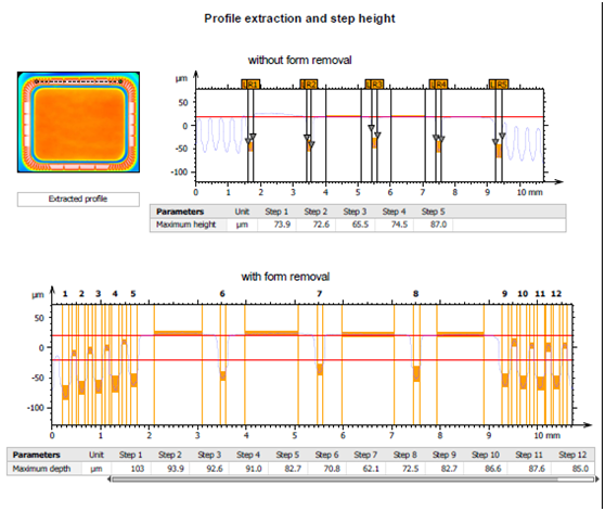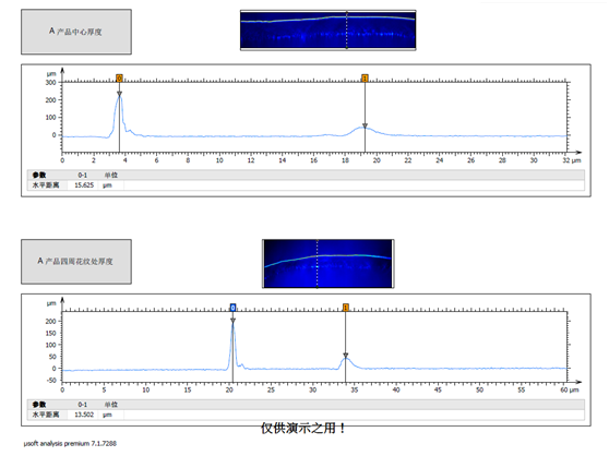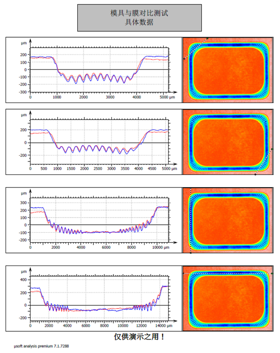 声学模组主要是测试音膜的三维形貌、X/Y轮廓度、花纹的深度/高度、模具与膜的对比、模具粗糙度等。以下为部分测试效果: